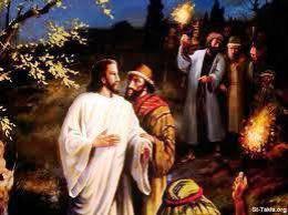 Matt 26 (v. 47) And while He was still speaking, behold Judas, one of the twelve, with a great multitude....came from the chief priests and elders of the people. (v. 49) Then immediately he went up to Jesus and said, “Greetings, Rabbi!” and kissed Him. (v. 50) ....Then they came and laid hands on Jesus and took Him.