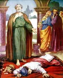Acts 5 (v. 3) But Peter said, “Ananias, why has satan filled your heart to lie to the Holy Spirit and keep back part of the price of the land for yourself?”