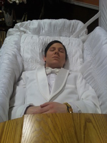 Man in the coffin – say to him: “consider yourself dead to sin”